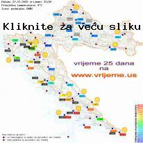 Vrijeme 15 dana Srednja DalmacijaTrogir, Čiovo, Drvenik, Split, Supetar, Bol, Hvar, Jelsa, Vis, Komiža, Omiš, Baška Voda, Makarska, Tučepi,