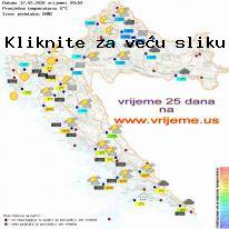 | | Petak - 20.02.2026 | Oborina: 9 mm | | |  | | | 4° | | | Promjenljivo oblačno, mogući pljuskovi | 12° | | | |