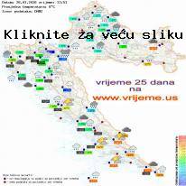 | | Petak - 27.03.2026 | Oborina: 4 mm | | |  | | | 7° | | | Pretežno oblačno uz umjerenu količinu kiše | 12° | | | |