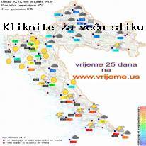 | | Subota - 24.01.2026 | Oborina: 8 mm | | |  | | | 11° | | | Pljuskovi uz moguću grmljavinu | 14° | | | |