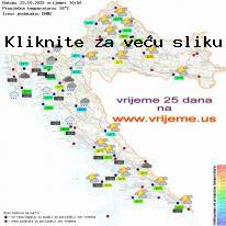 | Četvrtak - 23.10.2025 | Oborina: 27 mm | | |  | | | | | Pljuskovi uz moguću grmljavinu | 20° | | | |