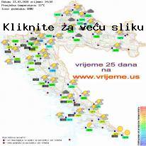 | | Utorak - 31.03.2026 | Oborina: 8 mm | | |  | | | 8° | | | Promjenljivo oblačno, mogući pljuskovi | 14° | | | 5 h | | | 57 % | |