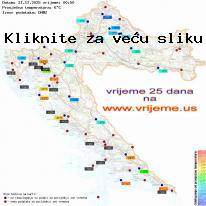 | | Petak - 26.12.2025 | Oborina: 1 mm | | |  | | | 6° | | | Pretežno oblačno uz umjerenu količinu kiše | 13° | | | |