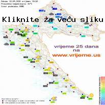 | | Srijeda - 22.04.2026 | Oborina: 4 mm | | |  | | | 16° | | | Promjenljivo oblačno, mogući pljuskovi | 20° | | | 12 h | | | 41 % | |